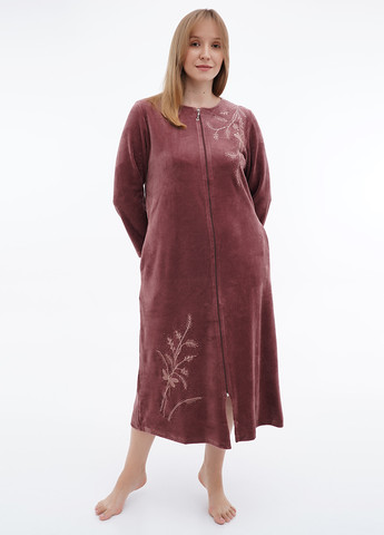 Велюровый халат на молнии средней длины. Рукав 3/4, два кармана, фиксирующий пояс.