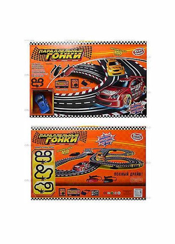 Трек Параллельные гонки 450 см 0832 Joy Toy. Трек работает от сети 220 вольт или 4 батарейки R20, 2 полосы движения, 2 гоночные машинки, свето-звуковые эффекты, конструктор трасс. Звук гонки, диско-мелодии, свет колес! Протяженность трассы 450 см. Три варианта сборки трассы. Прекрасное сочетание цена-качество. Отличный подарок. Отличный подарок и отличное соотношение цена/качество
