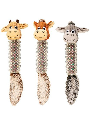 Flamingo Cow/Horse/Donkey Spines – необычная мягкая игрушка для собак, в которой сочетаются разные фактуры материалов, чтобы ваш питомец получил максимальное удовольствие от игры. Для настоящих охотников за дичью в голове игрушки встроена пищалка. Тело зверюшек-игрушек заключено в тубус из шипованной TPR резины, чтобы не только удовлетворить естественную потребность вашего питомца грызть и жевать, но и защитить мягкие части игрушки, а также способствовать очистке зубов питомца от налета. Упругие шипы при жевании игрушки собакой массажируют десны, препятствуют образованию зубного налета и зубного камня. Подобный вариант игрушки для собак – это отличная возможность занять питомца в ваше отсутствие, чтобы избавить его от скуки, стресса и отучить от деструктивного грызения ваших вещей и мебели. Для безопасности питомца все элементы морды вышиты, а тело и хвост имеют минимальное наполнение.