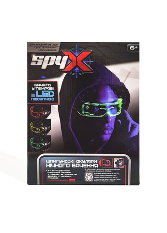 Очки ночного видения с LED подсветкой от SpyX (Спай Икс) для наблюдения в темноте! Вы можете увидеть объекты до 4,5 метров! Это высокотехнологичное устройство, которое посылает сигналы в темноте с помощью белых, зеленых и красных лучей. Это позволяет видеть в темноте и общаться с другими агентами. Если одновременно включить красный и зеленый светодиод, образуется желтый сигнал. Очки ночного видения с LED-подсветкой – это просто находка для юных секретных агентов. Теперь игры у супергероев станут еще интереснее! Игрушка рекомендована для детей от 6 лет. Для работы игрушки требуются 2 батарейки 357 (LR44), входящие в комплект.