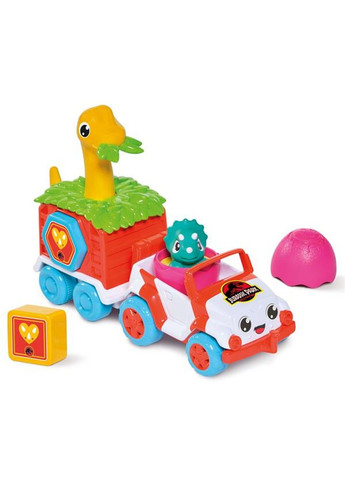 Игрушечный динотрейлер Toomies Jurassic World предназначен для поощрения развивающих игр малышей. Впереди в машине сидит маленький трицератопс. Встряхните его, чтобы услышать милое рычание. Подключите к машинке прицеп, внутри которого едет брахиозавр. Загрузите багаж в виде фигур сбоку машинки, нажмите на голову брахиозавра и динотрейлер сорвется вперед. Игрушка также может свободно ездить: тяните или толкайте машинку, и она будет двигаться. Погоня за автомобилем способствует развитию у детей большой моторики, в то время как сортировка форм поощряет логическое мышление и навыки решения задач. Игровой набор выполнен из крепкого безопасного пластика. Подходит мальчикам и девочкам от 12 месяцев до 3 лет. Батарейки не требуются.