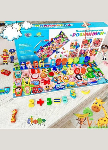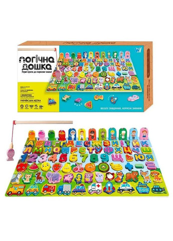 Деревянная логическая доска – лучший выбор для всестороннего развития ребенка. Вместе с ним ребенок овладеет счетом, обогатит свой словарный запас, познакомится с разными профессиями, изучит названия животных и транспортных средств, натренирует мелкую моторику рук и координацию движений. А для этого здесь все необходимое — деревянные элементы разных форм и размеров, множество игр, которые можно образовать с цветными фигурками, дизайн в ярких цветах, который будет развивать зрение малыша, украинский алфавит. Эта доска станет отличным решением для родителей, желающих, чтобы их ребенок проводил время не только весело, но и полезно! Особенности: - Доска позволяет поиграть в такие игры: магнитная рыбалка, отсортировать фигурки по категориям: транспорт, животные, фрукты, цифры, семья и профессии, украинский алфавит. - к доске прилагаются все необходимые фигурки; - из деревянных цифр можно составить математические примеры; - доска и игровые элементы изготовлены из древесины и окрашены качественными красителями, безопасными для здоровья ребенка. Размер упаковки: 46,5 см х 5,5 см х 26 см