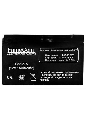 Аккумуляторная батарея FrimeCom GS1250 Необслуживаемая свинцово-кислотная батарея Технология AGM Зарядка постоянным напряжением при 25°С
