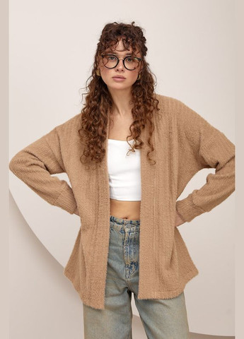 Этот стильный кардиган станет отличным дополнением вашего гардероба на прохладные дни. Он изготовлен из мягкого трикотажа с ворсом, что обеспечивает теплоту и комфорт. Кардиган обладает классическим фасоном на запах, с длинными рукавами и поясом, который позволяет подчеркнуть талию и создать элегантный силуэт. Длина до бедра делает его универсальным выбором, который можно носить как с джинсами, так и платьем.
