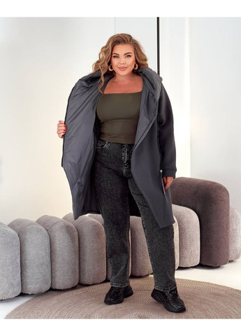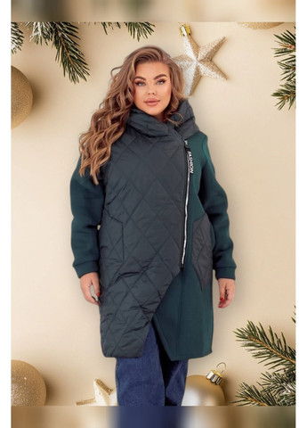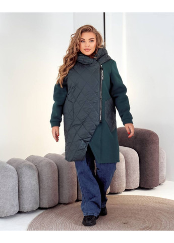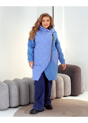 Утеплённый женский кардиган большого размера подходит для повседневной носки. Модель выполнена из двух материалов: спереди — стёганая плащёвка Лаке с синтепоном 150 г на м², спинка и рукава — из трикотажа с начёсом