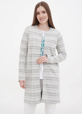 Модель имеет свободный прямой крой, который дарит удобство и подходит к разным типам фигуры. Застегивается на пуговицы спереди, что позволяет носить его как отдельный верх или как накидку. Узор у ромбы придает динамику образу, а вывязанные манжеты на рукавах и по низу изделия держат форму и создают завершенный силуэт.