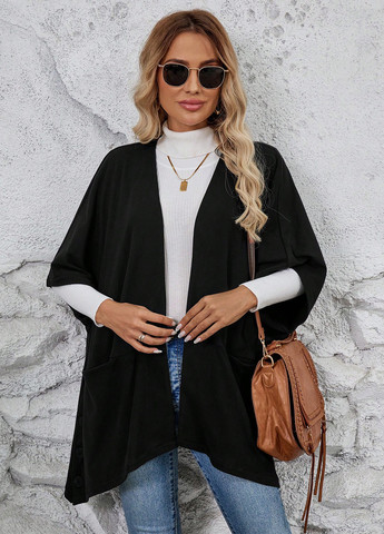 Женский кардиган SHEIN LUNE в стиле кейп. Подходит для повседневной носки. Она имеет стандартный подол и черный цвет. Изготовлен из высокоэластичного трикотажного полотна. Двубортная планка и рукава «летучая мышь». Инструкции по уходу: машинная стирка или профессиональная химчистка. Рекомендуемая температура: 18–25 °C (63–77 °F).
