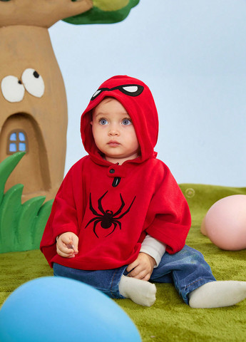 Модный комбинезон SHEIN Young Boy с капюшоном и графическим принтом. Этот комбинезон с графическим принтом. Круглый вырез и длинные рукава. Ткань – полиэстер средней эластичности. Рекомендации по уходу: машинная стирка с мягким моющим средством. Без подкладки и без прозрачных элементов.