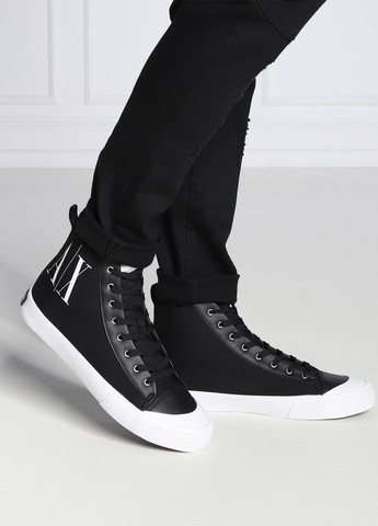 Мужские кеды Armani Exchange. Продемонстрируйте спортивный стиль в этих классных, базовых высоких кедах, изготовленных из текстиля в сочетании качественной экокожей. Прочная подошва из резины. Застежка - шнурки. Логотип бренда сбоку, на пятке и на язычке. Отличное качество.