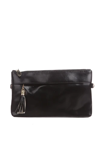 Клатч на два отделения, застежка на молнию, внутри карман-перегородка на молнии, снаружи карман на молнии, съемная длинная ручка.