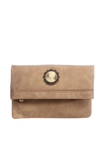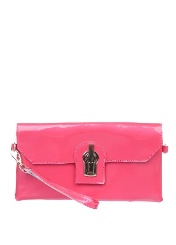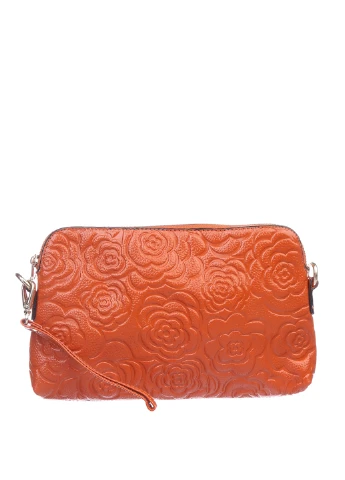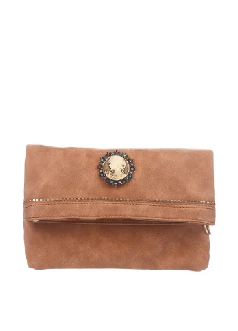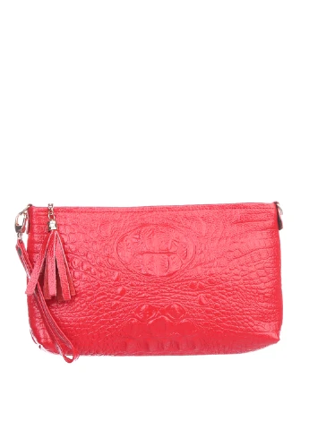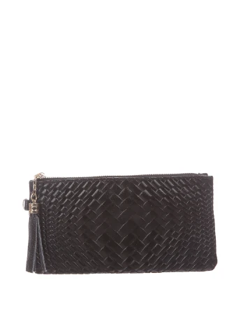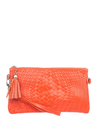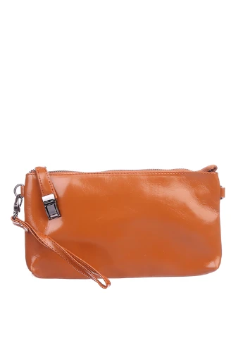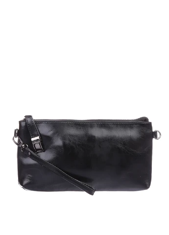 Клатч на два отделения, застежка на молнию, внутри карман-перегородка на молнии, снаружи карман на молнии, съемная длинная ручка.
