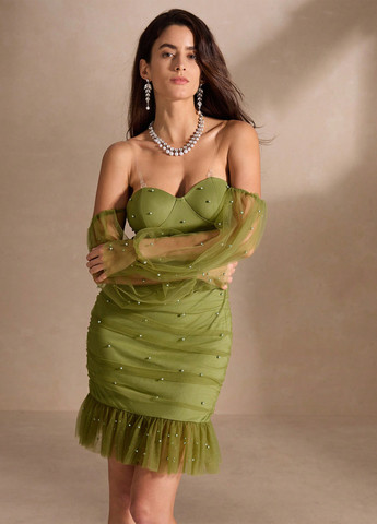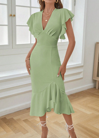 Материал Полиэстер, Вискоза, Эластан / Цвет Салатовый / Длина изделия Миди и ниже колена / Стиль Деловой, Коктейльный, Вечерний