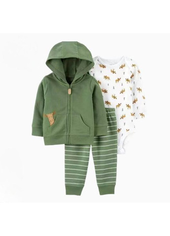 Комплект одежды Carter´s. Комплект состоит из толстовки, боди и брюк. Толстовка выполнена из экомеха с капюшоном. Застегивается на молнию. Эластичные манжеты и подол в рубчик. Толстовка с принтом в виде мишек. Боди с коротким рукавом и круглым вырезом. Застегивается снизу на кнопки. Боди с полосатым принтом. Брюки на эластичном поясе. Брюки модели джоггеры. Два задних кармана. Отличное качество.