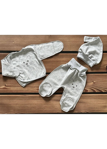 Комплект состоит из 3 предметов 1 предмет - боди 2 предмет – шапочка с узелком 3 ползуна на еврорезинке Материал: футер – 100% хлопок