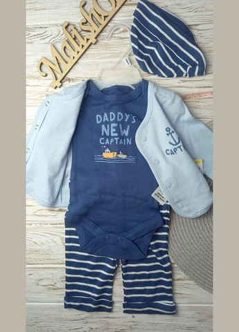 Набор 4ка 💯 % хлопок! Качественная фирменная фурнитура. Полномерные размеры. Набор состоит из двойной шапочки с прошитым отворотом, что очень удобно! Бодиком на короткий рукав и кофточкой на кнопочках чтобы очень удобно в любую погоду. Плюс штанишки в образе 😍 Этот комплект идеально подходит для маленького капитана! 📌 Новорожденный 0...1 мес 📌 3..6 месяцев Модельки видно, что полномерные измерения по запросу. Идут в подарочном формате с родными вешалками. Самый стильный презент или модная обновка для малыша.