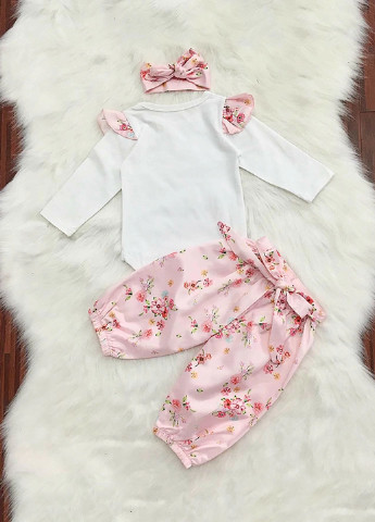Костюм-тройка в цветочный принт. Ситцевые брюки с хлопковым боди и повязкой.