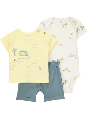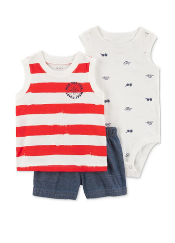 Комплект, состоящий из блузв без рукавов, леггинсов и повязки на голову из мягкого хлопкового трикотажа. С небольшим вырезом на пуговицах сзади в верхней части шеи и оборками на плечах спереди. Леггинсы с мягкой резинкой на талии. Повязка на голову с узлом спереди.