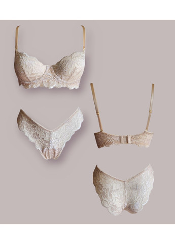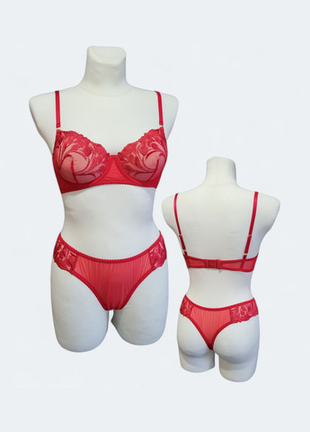Комплект из плотного эластичного кружева и эластичной сеточки. Бюстгальтер на косточках с мягкой чашкой и фигурной спинкой с выходами под бритель. Бразилиана классические средней посадки с двойной сеточкой сзади. Украинское производство, ручная работа.