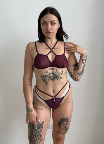 Комплект с открытым доступом коллекции «Разврат» Цвет: белый, фиолетовый, красный, черный Размер: S/M