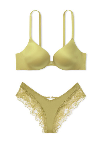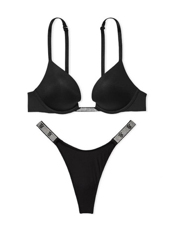 Комплект белья Victoria´s Secret. Красивый и удобный комплект, состоящий из бюстгальтера и трусиков, не оставит вас без внимания. Obsession приобретает новый смысл с нашим гламурным пуш-апом, который придает вам привлекательный подъем и форму благодаря мягкой набивке Memory Fit, запоминающей изгибы. Мягкие чашки на косточках обеспечивают комфортную поддержку. Идеально смотрится на теле, нежный и приятный к телу материал. Лиф на косточках. Регулируемые бретели, застежка сзади на крючки. Золотистая подвеска с логотипом VS в центре спереди. Эффектные гладкие трусики чики Victoria´s Secret. Шелковая ткань спереди и сзади. Эластичные ремешки сзади добавляют неожиданный, сексуальный штрих. Средняя посадка. Хлопковая ластовица. Отличное качество.