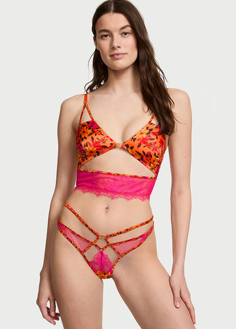 Кружевной комплект белья Victoria´s Secret. Шикарный кружевной комплект состоит из бюста и трусиков. Корсет-бюст в винтажном стиле с нежным цветочным кружевом подчеркивает вашу естественную форму, обеспечивая при этом идеальный легкий подъем, соответствующий размеру вашей чашки. Облегающий корсет, который можно носить как нижнее белье, так и основной элемент образа. Уплотненная чашка на тонкой поролоновой подкладке с косточками. Регулируемые бретели со кружевной отделкой. Он хорошо держит форму благодаря 8 вертикальным косточкам. Застежка сзади на 7 крючков, 2 позиции. Фирменные трусики тонг из шикарного кружева с удобной и комфортной посадкой. Прозрачная сетка сзади с цветочной вышивкой спереди слишком красива, чтобы ее скрывать. Ластовица из хлопковой панели. Красивые и утонченные трусики позволяют чувствовать себя женственно и комфортно. Отличное качество.