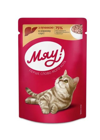 Влажный корм для котов Мяу печень в соусе 85 г B2210602 — это полноценное сбалансированное питание для Вашей кошки. Европейский стандарт качества. Корм обеспечивает организм животного необходимым количеством питательных веществ, витаминов и микроэлементов, способствует активизации обмена веществ, улучшению аппетита, роста и развития волосяного покрова. Содержание витаминов сохраняется до конца срока годности. Паучи Мяу упаковываются в современную вакуумную упаковку, которая позволяет сохранить продукт свежим и аппетитным, как будто он только приготовлен. Привлечение иностранных консультантов позволило изготовить серию влажных кормов Мяу, которые сочетают в себе оптимальное питание и вкусовые качества. Влажный корм для котов Мяу печень в соусе 100 г B2210602 это в первую очередь здоровое питание, которое сочетает в себе богатство вкуса и оптимальную порцию энергии. Состав: мясо и субпродукты животного происхождения, в том числе из печени не менее 4%, злаки, экстракты растительных белков, минералы, витамины (таурин), сахара, краситель Е171. Питательные вещества: белок — 7%, жир — 4.5%, зола — 2.5%, клетчатка — 0.3%, влажность — 82% Содержание витаминов и минералов: витамин А — 1200 МЕ/кг, витамин D3 -160 МЕ/кг, витамин Е — 5 мг/кг, кальций — 0.35%, фосфор — 0,25%. Содержит витамины В1, Вс.