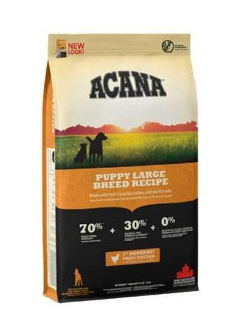 Щенкам крупных пород необходим специальный рацион: высокопротеиновый для правильного формирования и развития мышечной массы; низкоуглеводный, для контроля веса; сбалансированный по минералам для правильного развития опорно-двигательного аппарата. Именно поэтому формула Puppy Large Breed буквально переполнена ингредиентами высочайшего качества: мясом цыплят, выращенных на "свободном выгуле", цельными яйцами из местных ферм, камбалой, выловленной в дикой природе, фруктами и овощами. Все эти ингредиенты доставляются к нам на фабрику свежими каждый день. Без зерна и быстрых углеводов вроде картофеля и тапиоки, АКАНА содержит мясные протеины, необходимые для быстрого развития и отличной физической кондиции вашего щенка. Изготовленные на наших, отмеченных наградами кухнях, из свежих канадских ингредиентов, Биологически Соответствующие корма АКАНА — это вкусный способ обеспечить вашему питомцу силу, здоровье и долголетие. Состав: Свежее мясо цыпленка без костей (16%), высушенное мясо цыпленка (15%), высушенное мясо индейки (14%), красная чечевица, зеленый горошек, ливер (печень, сердце, почки) (6%) , высушенные мясо сельди (4%), свежие цельные яйца (4%), свежее мясо камбалы без костей(4%), жир из сельди (3%), вяленая люцерна (2%), фасоль (2%), зеленая чечевица, желтый горошек, клетчатка горошка, куриный жир (2%), свежие куриные хрящи (2%), высушенные водоросли, тыква, мускатная тыква, пастернак, капуста Кале, шпинат, зелень горчицы, зелень репы, морковь, яблоки, груши, лиофилизированная куриная печень, лиофилизированная печень индейки, клюква, черника, корень цикория, куркума, расторопша, корень лопуха, лаванда, корень алтея, плоды шиповника, цинка протеинат 100 мг, сухие продукты ферментации Enterococcus Faecium NCIMB10415. Рекомендации по кормлению: Каждая собака — это яркая индивидуальность и поэтому нормы кормления в каждом отдельном случае будут отличаться, в зависимости от породы, активности, возраста и окружающей среды. Вот почему мы рекомендуем использовать таблицу на упаковке как ориентировочную и постоянно проверять вес собаки для коррекции рациона по мере необходимости. Кормите собаку 2 раза в сутки и обеспечьте ей постоянный доступ к свежей питьевой воде. Когда вы примете решение изменить корм вашей собаки с традиционного на корм Акана, очень важно, чтобы этот переход был постепенным. Для пищеварительной системы нужно время, чтобы адаптироваться к более богатому питательными веществами корму ACANA. Рекомендуем производить замену в течение 5-7 дней, постепенно смешивая гранулы ACANA с предыдущим традиционным кормом, увеличивая миске количество Акана и уменьшая количество предыдущего корма с каждым днем так, чтобы на 7 сутки вы кормили 100% ACANA. Энергетическая ценность: 3375 ккал/кг или 405 ккал на чашку 250 мл (120г), где источником 34% энергии является протеин, 28% фрукты и овощи, 38% жир.