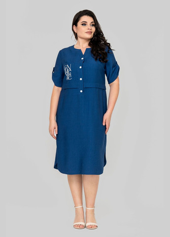 Летнее льняное платье "Эмма" полуприталенного силуэта голубого цвета. Ткань почти не тянется. Спинка стачная со шлицей по низу. Рукав короткий одношовный, втачный. Пилочка отрезная по талии. Справа расположен накладной карман с клапаном. Подойдет для повседневных летних образов. Доступные размеры: 52-62. Характеристики: Тип ткани: лен – легкая, дышащая ткань с низкой растяжимостью. Состав ткани: лен 60%, полиэстер 40%. Длина рукава: р.52,54 – 36 см; р.56,58 – 38 см; р.60,62 – 39 см Длина изделия по спинке: р.52,54 – 107см; р.56,58 – 109см; р.60,62 – 112см (в некоторых местах указано 105см для 52, 54 размеров) Ориентировочные замеры готового изделия: 52 размер: Обхват груди – 110 см, обхват талии – 112 см, охват бедер – 122 см; ширина рукава – 40 см; длина рукава – 36 см. 54 размер: Обхват груди – 114 см, обхват талии – 116 см, обхват бедер – 126 см; ширина рукава – 40 см; длина рукава – 36 см. 56 размер: Обхват груди – 118 см, обхват талии – 120 см, обхват бедер – 130 см; ширина рукава – 44 см; 58 размер: Обхват груди – 122 см, обхват талии – 124 см, обхват бедер – 134 см; ширина рукава – 44 см; длина рукава – 38 см. 60 размер: Обхват груди – 126 см, обхват талии – 128 см, обхват бедер – 138 см; ширина рукава – 46 см; 62 размер: Обхват груди – 130 см, обхват талии – 132 см, обхват бедер – 142 см; ширина рукава – 46 см; длина рукава – 39 см.