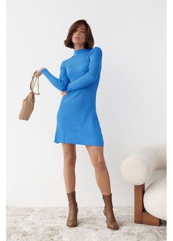 У модели короткие рукава-фонарики внизу и вверху собраны на узкую резинку, которая позволяет закрывать или обнажать плечи. Спереди расположен вертикальный шов с драпировкой, а на спинке, по центру, вшито множество резинок, дополнительно подчеркивающих фигуру. Отрезная линия талии идет без резинки" , края низа прямые. В боковом шве расположена молния.Под юбкой предусмотрена подкладка. Параметры модели 84*60*92 рост 173