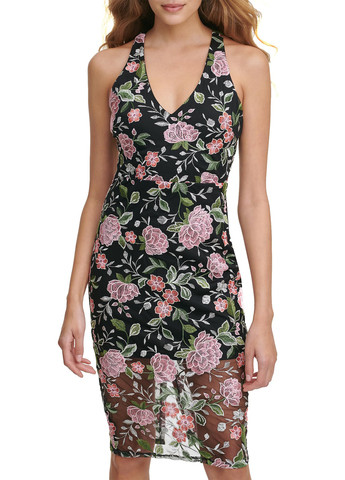Женское платье GUESS. Женские платья GUESS представляют современную моду, которая сочетает в себе надежность и стиль. Они станут важной частью вашего гардероба, отлично подходят как для вечернего выхода, так и в повседневной жизни. Цветочная вышивка. Есть подкладка. Подкладка длины мини. Прозрачная ткань сеточка. Вшитые чашечки. Позади изящная спинка. Застегивается на молнию на спине и пуговички на воротнике сзади. Отличное качество.