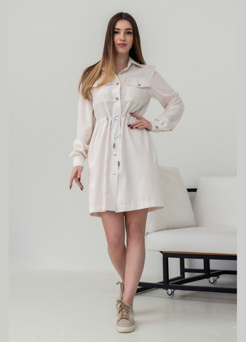 Это легкое платье свободного силуэта длиной выше колена сочетает комфорт и романтичность. Она имеет длинные рукава и центральную застежку на 5 пуговиц, которые доходят до линии талии. Платье отрезное по линии бедер, где выполнена сборка, придающая ей легкость и кокетливость. Перед оформлением нагрудных выточок от бокового шва для лучшей посадки. Горловина отделана аккуратным воротником-стойкой. Широкие рукава оканчиваются узкими манжетами, застегивающимися на пуговицы. В комплекте предусмотрен пояс из основной ткани, который поможет подчеркнуть талию. Изготовленное из штапель-твила, сочетающего вискозу и хлопок, это платье будет легким, приятным к телу и будет иметь хорошую драпировку. Характеристики: Материал платья: Штапель-твил (60% вискоза, 40% хлопок) Крой: Свободный силуэт, длина выше колена, отрезная по линии бедер со сборкой Рукав: Длинный, широкий, узкий манжет на пуговице Горловина: Воротник-стойка талии) Детали: Нагрудные вытачки Дополнительно: Пояс из ткани платья Стиль: Легкий, романтичный, повседневный Свойства: Легкая, приятная к телу ткань с хорошей драпировкой