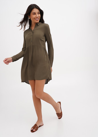 кешбэк от 8 ₴рассрочка-44%889 ₴1 199 ₴667 ₴Бесплатная доставка сTerranova зеленое кэжуал платье рубашка однотонное без декора с длинным рукавом вискоза - производство – БангладешXSМатериал Вискоза / Цвет Зеленый / Фасон Платье-рубашка / Длина изделия Мини / Стиль КэжуалНа размер XS длина изделия 88 см, длина рукава 62 см.