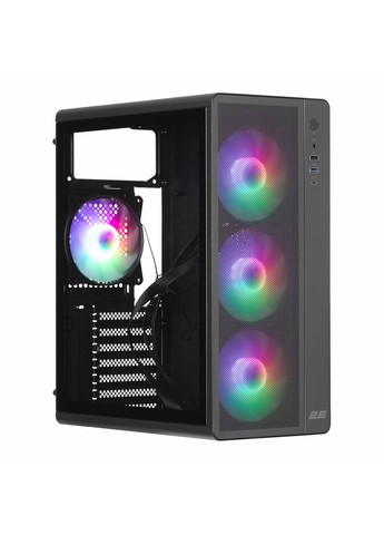 Корпус 2E GAMING Tubo G2057B черный с 200 мм ARGB вентилятором с сетчатой лицевой панелью и двумя 120мм ARGB вентиляторами на верхней и одним 120мм ARGB вентилятором на задней панелях. Модель отлично подойдет для самостоятельной и промышленной сборки, благодаря рационально организованному внутреннему пространству и не сложной конструкции.