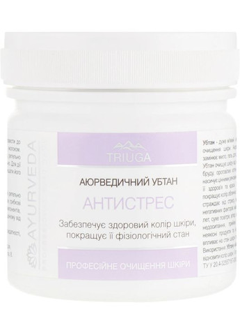 Качественное очищение кожи - залог ее здоровья и красоты. Самый первый и важный этап в уходе, в любом возрасте, для любого типа кожи. Использование химических и агрессивных средств для очищения приводит к нарушению барьерных функций кожи, делает ее беззащитной перед микробами. Неправильное очищение может привести к кожным заболеваниям. Убтан – древнее индийское средство на основе муки, глины, эфирных масел и аюрведических трав. Нежно, но эффективно очищает кожу от загрязнений, устраняет ороговевшие клетки, выводит токсины, насыщает ценными веществами, необходимыми для ее здоровья и красоты. Освежает, успокаивает, улучшает цвет лица. Может заменить мыло, умывающую пенку, скраб и маску. Каждый день наша кожа страдает от стресса, вызванного влиянием негативных факторов окружающей среды и образом жизни современных людей: городской смог, ультрафиолет, сухой воздух, ветер, мороз, табачный дым, недосыпание, прием таблеток, алкоголя, некачественные продукты и т.д. Все это оказывает негативное влияние на состояние кожи и ее внешний вид. Использование Убтан «Антистресс» поможет восстановить цвет кожи, ее упругость и мягкость. Свежая и нежная кожа каждый день.
