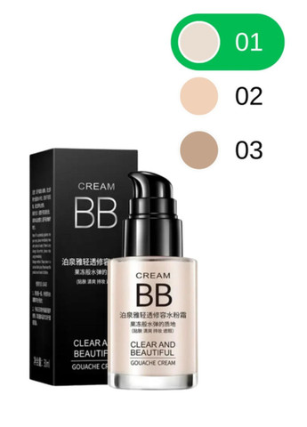 Суперстойкий увлажняющий BB крем Bioaqua Super Wearing BB Cream (01 - Бежевый светлый) Обеспечить комплексный уход за кожей и создать стойкий макияж можно благодаря использованию суперстойкого крема ВВ от фирмы Bioaqua. Косметическое средство имеет легкую текстуру, представленную в упаковке с дозатором, что позволяет легко наносить и растушевывать крем. Тональное средство не пересушивает кожу, не создает ощущение стянутости и эффекта маски, не скатывается в течение дня, хорошо матирует кожу и убирает жирный блеск. ВВ крем интенсивно наполняет кожу целебной влагой, препятствует ее испарению, улучшает цвет и укрепляет структуру. Косметическое средство выравнивает рельеф, улучшает цвет лица, скрывает расширенные поры и темные круги, мимические морщинки, пигментные пятна, красноту и другие недостатки на коже. ВВ крем питает кожу полезными веществами, оказывает благоприятное влияние на внешний вид и общее состояние кожи, препятствует появлению сухости и шелушения. Использование тонального крема в бьюте процедур смягчает и защищает кожу от преждевременного старения и негативных воздействий окружающей среды. Выбирая ВР крем для макияжа, следует учитывать свой цветотип и тон кожи. Способ применения: Наносить крем небольшими мазками на предварительно очищенную кожу лица с помощью подушечек пальцев, кисточки или спонжа.