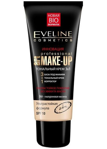 Ультрастойкий тональный крем 3в1 SPF10 - Eveline Cosmetics 3в1 Art Professional Make Up Вы смотрите в зеркало и не верите своим глазам. Кожа вашего лица стала идеальной, а ее цвет матовым и ровным. На ней не видно ни одного покраснения, прыщика или пигментного пятна. Кожный покров свежий, упругий и бархатный. Что стало причиной перемен? Ответ прост: использование ультрастойкого тонального крема от Eveline Cosmetics. Этот замечательный крем от польского бренда сделает вашу кожу подобно дорогому шелку. Он выровняет цвет и придаст ему матовость, сделав мягким и нежным. Представленное средство надежно замаскирует мелкие изъяны кожного покрова, обогатит его влажной и питательными веществами, придав мягкости и освободив от пересыхания. Кроме того, обсуждаемый крем защитит кожу от вредного воздействия ультрафиолета, предотвратив фотостарение. А еще он невероятно устойчив, и сохранит отличный свежий вид в течение всего дня, подчеркивая красоту вашего лица. Приобретите ультрастойкий тональный крем Eveline Cosmetics, и мечта об идеальной коже лица сбудется. Нанесите небольшое количество на влажное лицо в направлении от лба к линии подбородка и распределите пальцами или спонжем. Состав water, cyclopentasiloxane, dimethicone, isododecane, glycerin, ethylhexyl metoxycinnamate, sodium chloride, magnesium sulfate, hydrochlorid hydrochloride, dimethycone/vinyl dimethycone crosspolymer, caprylic/capric trigla crosspolymer, disodium EDTA, phenoxyethanol, ethylhexylglycerin, fragrance, CI 77491, CI 77492, CI 77499