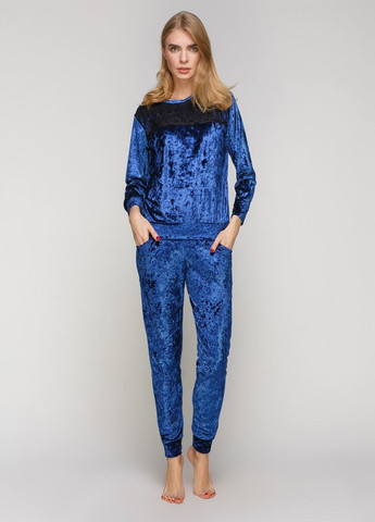 Цвет Синий / Фасон Брючный / Стиль Повседневный / Узор Однотонный / Материал Велюр