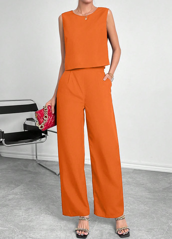 Цвет Оранжевый / Фасон Брючный / Стиль Повседневный / Узор Однотонный / Материал Креп