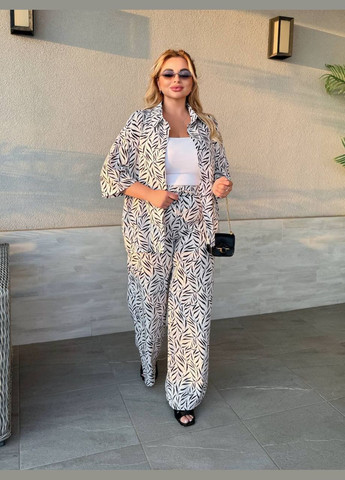 Женский костюм из ткани креп-жатка – это элегантный и стильный ансамбль, который подойдет как для офисного дня, так и для специальных событий. Рубашка в этом костюме классической формы, а футболка с сублимацией придаст оригинальность и свежесть образа. Брюки палаццо придают костюму легкости и игривости, создавая идеальный баланс между комфортом и элегантностью. В этом костюме каждая женщина будет смотреться стильно и безупречно!
