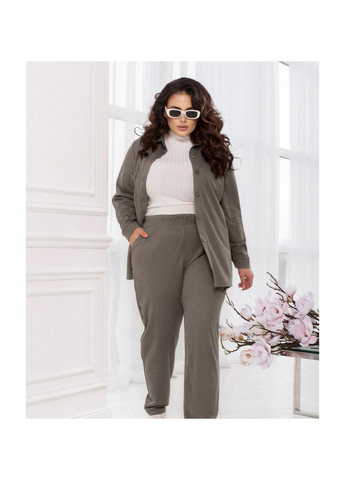 Стильный монохромный костюм – идеальный вариант для теплой весны и жаркого лета. В комплект входят лаконичные брюки на резинке с карманами и блуза на завязках и резинке, вшитой по линии талии, выполнена в форме жакета с воротником. Костюм может быть идеально дополнен как классическими туфлями, так и лоферами или кроссовками. Ориентировочные замеры готового изделия: Блуза-жакет: 46-48 р-р: длина изделия: 78 см, обхват рукава 42 см, длина рукава от горловины 54 см, ОГ-110 см, ОТ-85-100 см, ОБ-104 см. .50-52 р-р: длина изделия: 80 см, обхват рукава 44 см, длина рукава от горловины56 см, ОГ-118 см, ОТ-90-106 см, ОБ-112 см. 54-56 р-р: длина изделия: 80 см, обхват рукава 46 см, длина рукава от горловины 57 см, ОГ-128 см, ОТ-94-112 см, ОБ-120 см. 58-60 р-р: длина изделия: 83 см, обхват рукава 52 см, длина рукава от горловины58 см, ОГ-136 см, ОТ-106-124 см, ОБ-128 см. 62-64 р-р: длина изделия: 84 см, обхват рукава 52 см, длина рукава от горловины 62 см, ОГ-144 см, ОТ-112-130 см, ОБ-136 см. 66-68 р-р: длина изделия: 87 см, обхват рукава 56 см, длина рукава от горловины 62 см, ОГ-152 см, ОТ-116 -134 см, ОБ-142 см. Брюки: 46-48 р-р: длина брюк по внутреннему шву 72 см, длина брюк по наружному шву с учетом пояса 102 см, ОТ-74-98 см, ОБ-112 см. 50 -52 р-р: длина брюк по внутреннему шву 73 см, длина брюк по наружному шву с учетом пояса 103 см, ОТ-74-98 см, ОБ-120 см. 54-56 р-р: длина брюк по внутреннему шву 73 см, длина брюк по наружному шву с учетом пояса 104 см, ОТ-80-104 см, ОБ-128 см. 58-60 р-р: длина брюк по внутреннему шву 74 см, длина брюк по наружному шву с учетом пояса 106 см , ОТ-92-116 см, ОБ-136 см. 62-64 р-р: длина брюк по внутреннему шву 74 см, длина брюк по наружному шву с учетом пояса 108 см, ОТ-100-124 см, ОБ-144 см .66-68 р-р: длина брюк по внутреннему шву 75 см, длина брюк по наружному шву с учетом пояса 110 см, ОТ-110-132 см, ОБ-152 см.