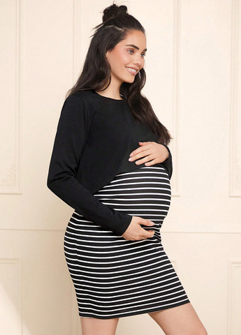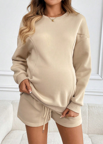 Комплект одежды для беременных и кормящих мам, включает верх и низ. Комплект отличается непринужденной посадкой, V-образным вырезом, удлиненной длиной и свободным силуэтом. Он изготовлен из мягкой эластичной ткани, подходящей для комфорта во время беременности.