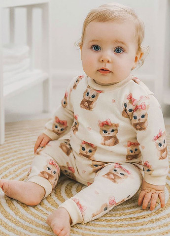 Цвет Бежевый / Стиль Повседневный / Узор Кошки / Материал Хлопок, Трикотаж