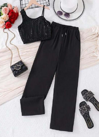 Брюки: длина 44 см, талия 19 см, бедра 29 см, шаговый шов 27 см.