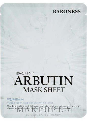 Описание Тканевая маска с арбутином - Beadd Baroness Mask Sheet Arbutin Арбутин – ценное вещество, обладающее мощными отбеливающими свойствами. Он в кратчайшие сроки устраняет нездоровые темные оттенки на лице – пигментные пятна. Опытные специалисты южнокорейского бренда Bead разработали осветительную формулу тканевой маски на основе арбутина. Beadd Baroness Mask Sheet Arbutin не только эффективно борется с пигментацией, но и защищает личико от ультрафиолетового излучения, предотвращая повторное возникновение нежелательных пятен. Особенности тканевой маски с арбутином от Beadd:- изготовлена из тончайшей ткани, поэтому плотно прилегает к лицу;- выравнивает оттенок кожи;- разглаживает микрорельеф;- насыщает клетки полезными веществами;- гарантирует безопасное пребывание на солнце;- увлажняет и смягчает;- успокаивает; личико чистым, свежим и светлым. Очистите кожу тонером. Распределите маску и оставьте на 10-20 минут. Остатки эссенции вотрите массирующими движениями в кожу лица. Состав Water, Glycerin, PEG/PPG-17/6 Copolymer, Glycereth-26, Trehalose, Sodium Hyaluronate, PEG-60 Hydrogenated Castor Oil, Beta-Glucan, Panthenol, Alcohol, Methylparaben, Hydroxyethylcellulose, Phase Брон Extract, Hydrolyzed Collagen, Glycin Soja (Soybean) Seed Extract, Saccharomyces Cerevisiae Extract, Polygonum Multiflorum Root Extract, Xanthan Gum, Carbomer, Triethanolamine, Phenoxyethanol, Tocopheryl Acetate, Allantoin, Arbu