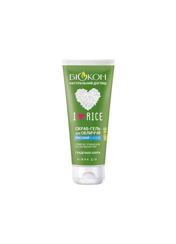 Скраб-гель для лица Биокон I love rice содержит 100% натуральные рисовые скраб-частицы и рисовую воду. Обеспечивает глубокую очистку кожи. Бережно полирует и придает гладкость. Мягко устраняет содержимое пор, удаляет излишки себума. Алоэ вера увлажняет и оздоравливает кожу лица.