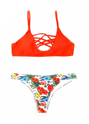 Стильный женский купальник белый с пальмовыми листьями, с открытой спиной, спереди V-образный глубокий вырез. Хорошо сидит на фигуре. Внутри съемные чашки. Чашки без пуш-ап.