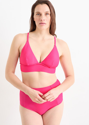 Бюстгальтер бикини без косточек и застежки. Регулируемые бретели. Чашечки со съемными вставками хорошо поддерживают грудь и придают ей форму. С подкладкой. Возможно повреждение бирки.