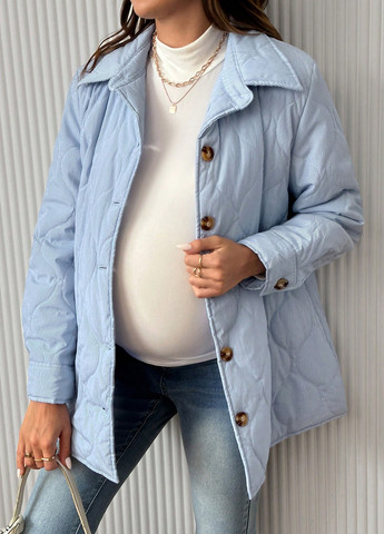 Удобная куртка на пуговицах, предназначенная для будущих мам. Она имеет свободный крой и стандартный дизайн рукавов. Куртка включает воротник и застежку на пуговицы спереди. Она имеет стандартную форму подола и однобортную планку. Ткань не тянется. Карманов не имеет.
