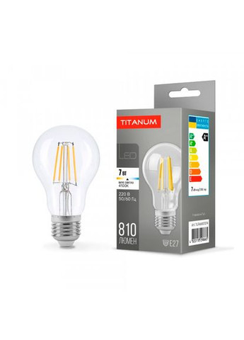 Светодиодная лампа TITANUM Filament A60 7W E27 4100K предназначена как для внутреннего освещения жилых помещений, так и для наружного использования. Идеальна для декоративного, местного и направленного освещения. Серия Filament по дизайну похожа на старые лампы накаливания, но с использованием современных технологий. Внутри лампы находятся тонкие нити светодиодов, выделяющие мало тепла и не требующие отвода тепла. Корпус выполнен из стекла, что делает лампу уязвимой к падению и ударам. Особенности - Защита от скачков напряжения в диапазоне от 220 до 240В. - Равномерное освещение без мерцаний, функция мгновенного включения и отсутствие ультрафиолетового излучения. - Большой ресурс работы - 20 00 пяти лет.) Гарантия 1 год. Энергосберегающие LED лампочки имеют высокую светоотдачу (116Лм/Вт). Световой поток – 810Лм. Комфортный для глаз свет, не приводит к усталости и не ухудшает эмоциональное состояние, благодаря естественной цветопередаче (&80Ra) и отсутствию ультрафиолетового излучения. Белый свет (4100К), создает яркое и комфортное освещение, приближенное к дневному. Лампа светит мягко, без резких теней, угол рассеяния – 360°. В состав этой лампы не входит ртуть и другие вредные вещества. Срок пригодности к использованию не ограничен. Не подлежит утилизации в виде бытовых отходов.
