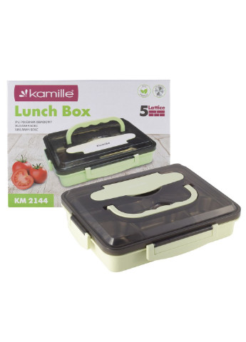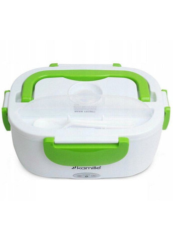 Ланч-бокс Kamille Snack с двумя емкостями на 450мл и 650мл. Компактный ланч-бокс обладает высоким качеством и прекрасно подходит для транспортировки домашних обедов или блюд для пикника. Легкий пластиковый корпус (с серыми элементами) размером 16.5х15х20см; удобная складывающаяся ручка и дополнительный отсек для столовых приборов (ложка, вилка). Этот ланч-бокс оборудован системой обогрева от сети 220V 40Вт/50Гц (кабель в комплекте 50см). Упакован в фирменную цветную коробку. Не подходит (!) для первых блюд и не подходит (!) для разогрева в микроволновке. Серия: Snack; Материал: Пластик, нержавеющая сталь; Объем: 450 мл + 650 мл; Размер: 16.5 х 15 х 20 см; Крышка: Пластиковая с ручкой и защелками; Комплектация: 1 ланч-бокс, 2 емкости, 1 крышка, 1 кабель; Посудомоечная машина: Нет;